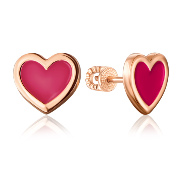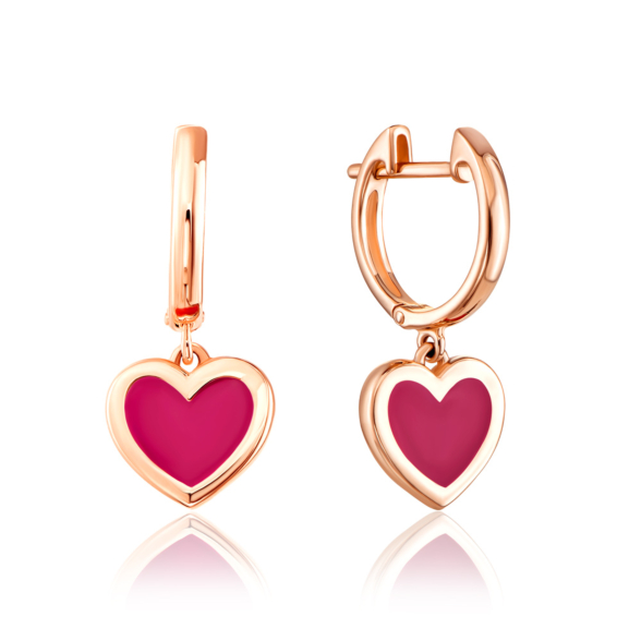 Підвіска «Серце» з червоного золота 585 проби з рожевою емаллю.