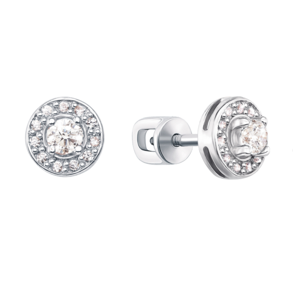 Пусети (сережки-гвоздики) з білого золота з прозорими фіанітами гармонійно доповнять ваш повсякденний образ і будуть чудово поєднуватися з іншими ювелірними прикрасами. Сережки виконані в традиційному дизайні і мають невеликі розміри, тому сподобаються тим представницям прекрасної статі, які перш за все цінують лаконічність форм і комфорт.