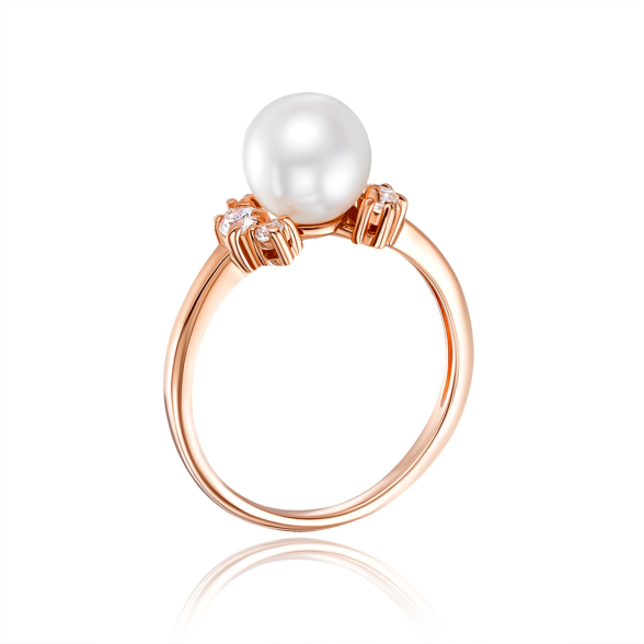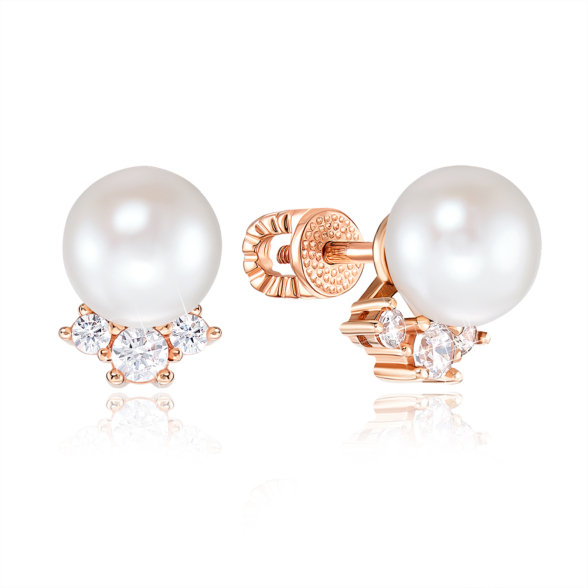 Сережки-пусети (гвоздики) з червоного золота 585 проби з перлами і фіанітами.