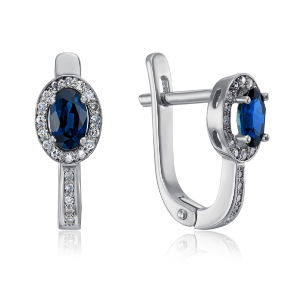 Золоті сережки з сапфіром та діамантами. Артикул 52862/02/1/8051