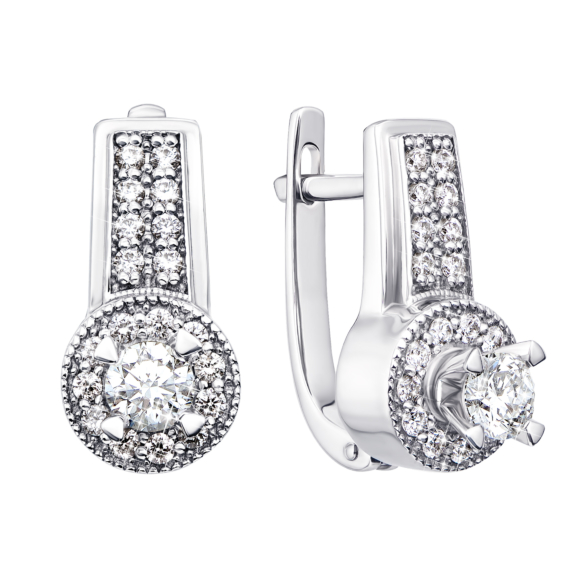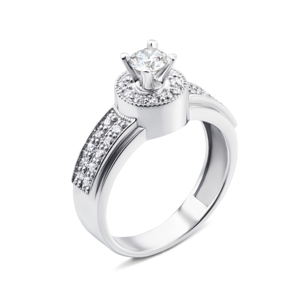 Каблучка з білого золота 585 проби з діамантами