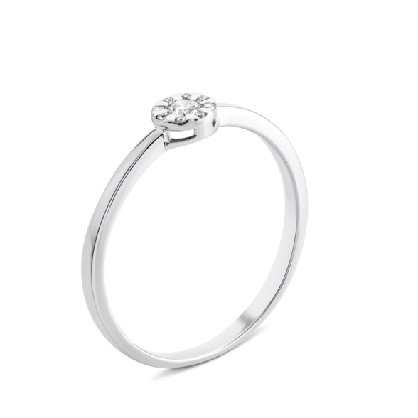 Каблучка з білого золота 585 проби з діамантами