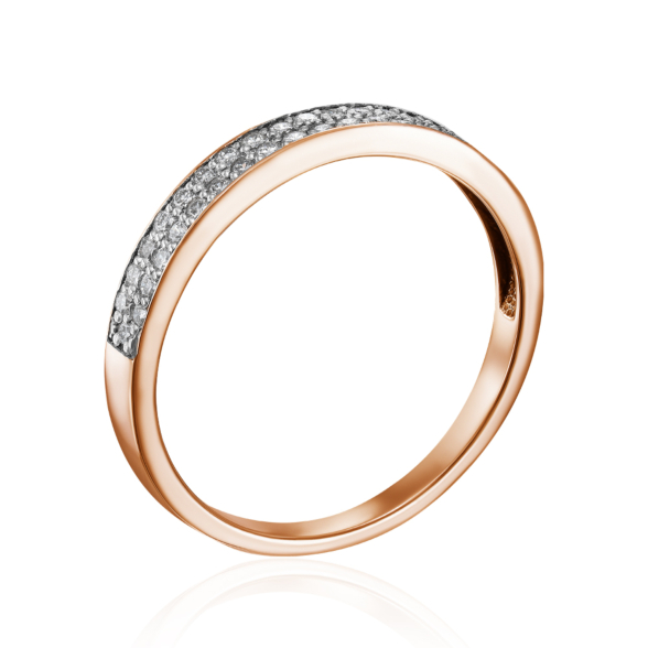 Комбінована золота каблучка з розсипом діамантів, закріплених за допомогою каста, виконаного з білого золота, - дивно красива і розкішна прикраса. Класика і модерн злилися воєдино в цій елегантній моделі каблучки. Червоне золото, що плавно переходить у діамантове паве в оправі з білого дорогоцінного металу, заіскриться на вашому пальчику, підкреслюючи красу руки, а універсальний дизайн дозволить комбінувати його з різними прикрасами з червоного або білого золота.