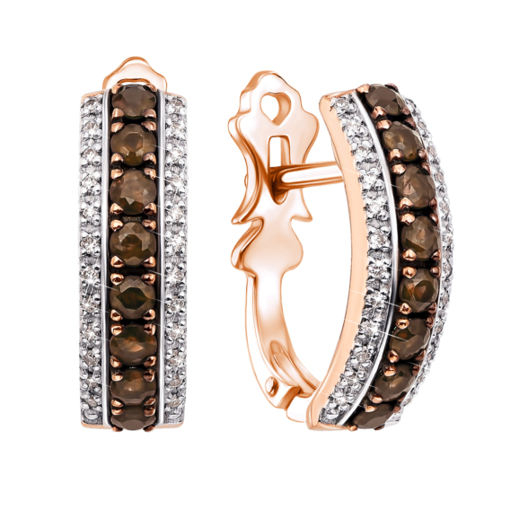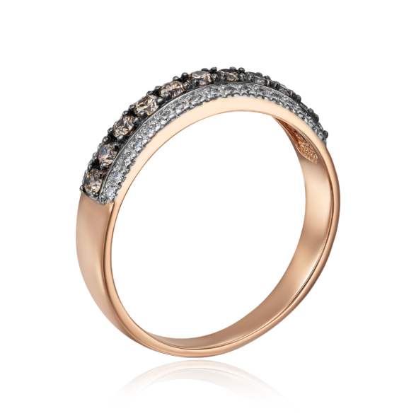Каблучка з червоного золота 585 проби з коньячними і білими діамантами