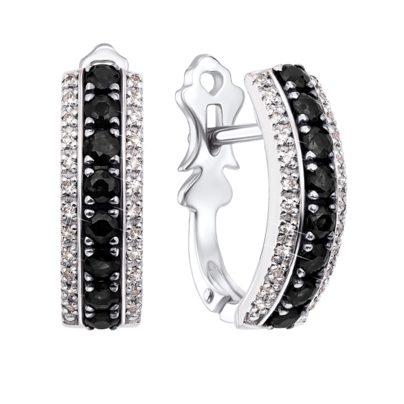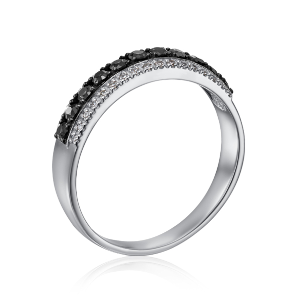 Каблучка з білого золота 585 проби з чорними і білими діамантами