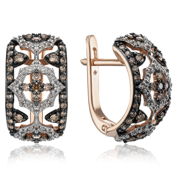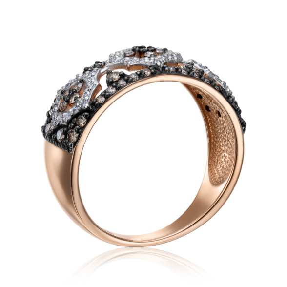 Каблучка з червоного золота 585 проби з коньячними і білими діамантами
