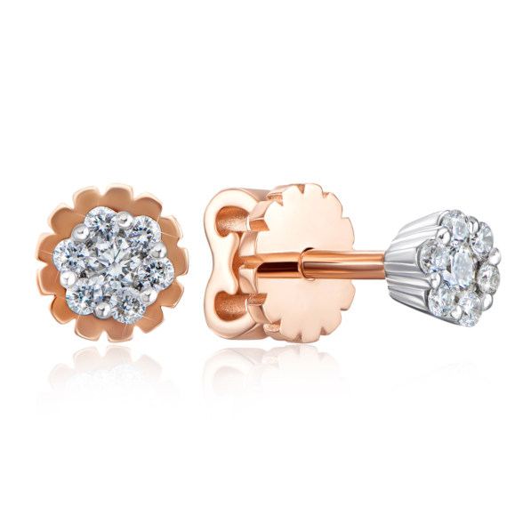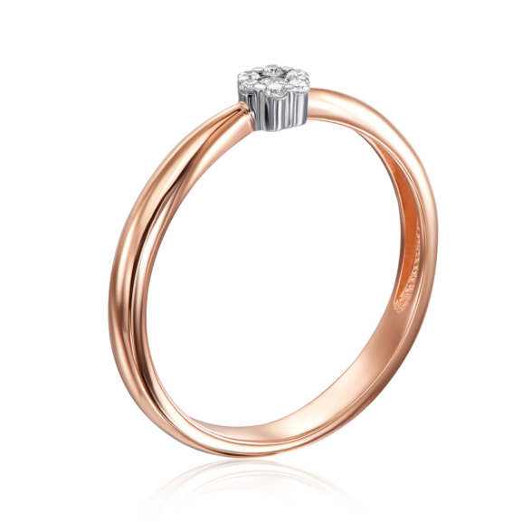 Тонка золота каблучка з діамантами з оригінальним дизайном у вигляді квіточки буде цікаво виглядати як з класичними, так і з сучасними комплектами ювелірних прикрас. Каблучка з червоного золота з діамантами можна вибрати в якості подарунка на весілля або вінчання і додасть особливу витонченість на руці власниці.