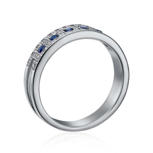 Каблучка з білого золота 585 проби з діамантами і сапфірами