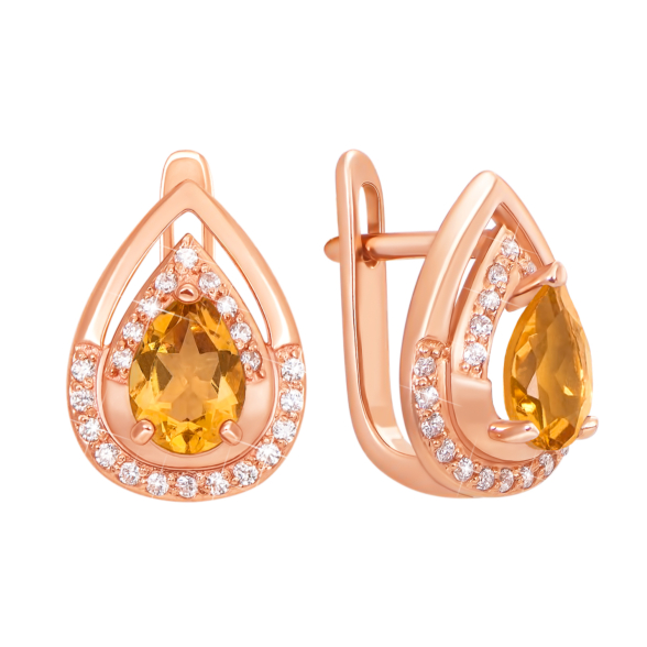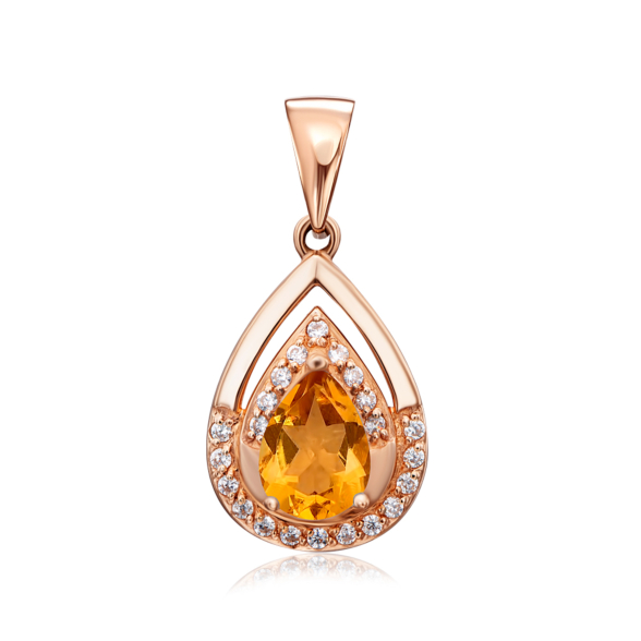 Каблучка з червоного золота 585 проби світиться і переливається всіма променями сонячного світла, які відбиваються від його гладкої полірованої поверхні. М'який медовий колір крупного цитрину в центральній частині виробу доповнює і підкреслює ніжну природну красу червоного дорогоцінного металу.