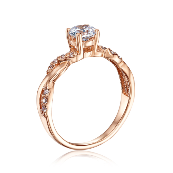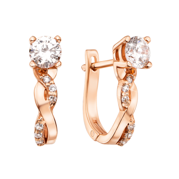 Каблучка з червоного золота 585 проби з фіанітами