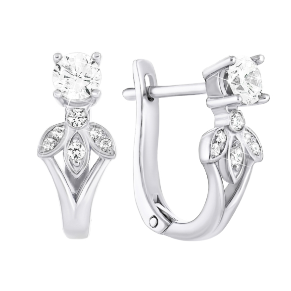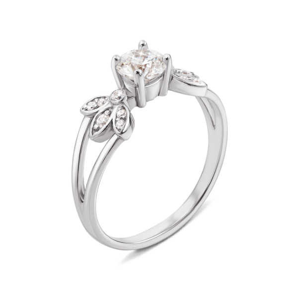 Витончене поєднання благородного білого золота з великим прозорим фіанітом в центрі виробу і розсипом невеликих каменів на обідку перетворює цю каблучку в витончену прикрасу, яка підкреслить романтичну натуру своєї власниці. Золота каблучка з фіанітами обов'язково привнесе в жіночий образ нотки вишуканості та чарівності, а також стане бажаним подарунком на заручини.