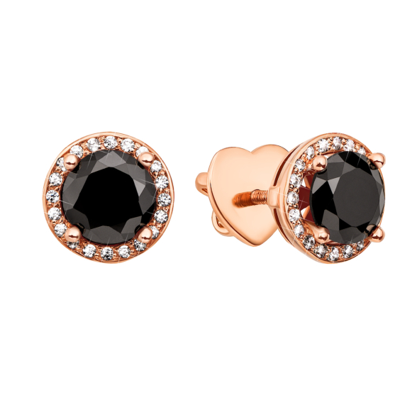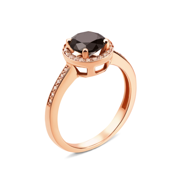 Каблучка з червоного золота 585 проби з чорним і білими фіанітами