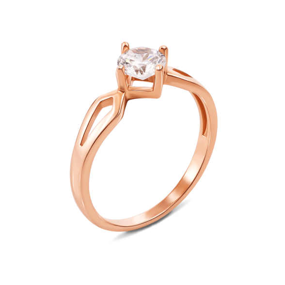 Оригінальна каблучка з червоного золота, прикрашена кубічним цирконієм, припаде до душі прихильницям незвичайних ювелірних виробів. Строгі лінії, що утворюють витончений візерунок, роблять каблучку прекрасним доповненням до будь-якого стилю. Круглий білий камінь, який піднімається в центрі обідка, додасть шарм своїй власниці і приверне до неї увагу оточуючих. Оригінальна золота каблучка з фіанітом - відмінний варіант подарунка на заручини або іншу урочисту подію.