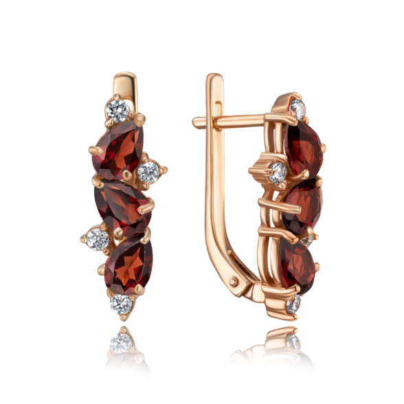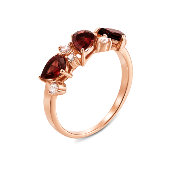 Каблучка з червоного золота 585 проби з гранатом і фіанітами