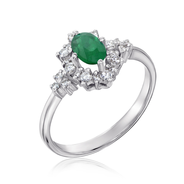 Золота каблучка зі смарагдом і прозорими діамантами, декоративна частина якої нагадує казкову дорогоцінну квітку, приверне до вас увагу з першого погляду. Така прикраса підкреслить природну красу і аристократичність кожної жінки.
