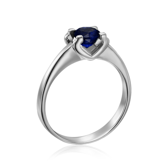 Каблучка з білого золота 585 проби з сапфіром