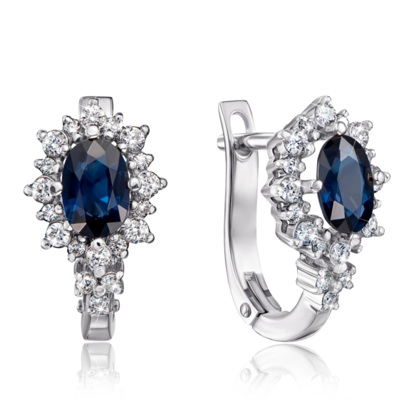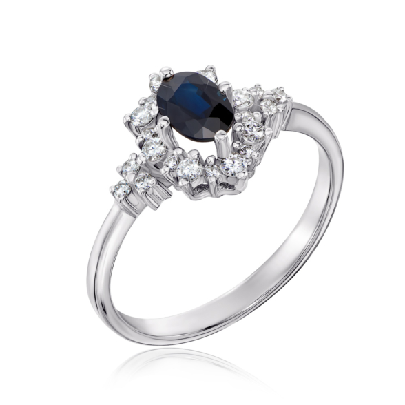 Каблучка з білого золота 585 проби з сапфіром і діамантами