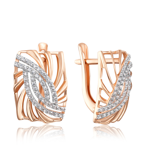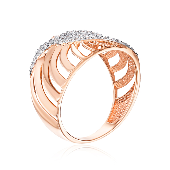 Каблучка з червоного золота 585 проби з фіанітами.