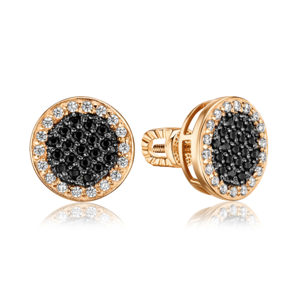 Круглі пусети зі вставками кубічного цирконію (фіанітів) різних кольорів виконані в строгому дизайні, який чудово впишеться в діловій образ. Декоративна частина ювелірних виробів представлена круглою пластиною, яка покрита розсипом чорних фіанітів в оточенні білих каменів. Застібка сережок - надійний штіфтовий замок, який робить прикрасу більш повітряною і невагомою.