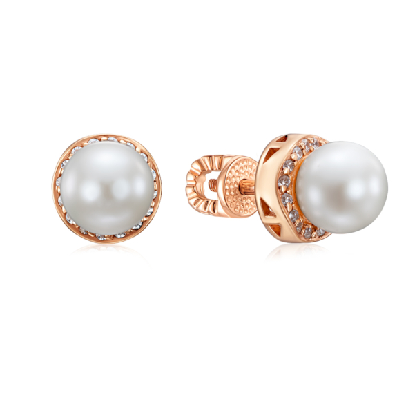 Золоті пусети з перлами і фіанітами. Артикул 21239/01/0/544