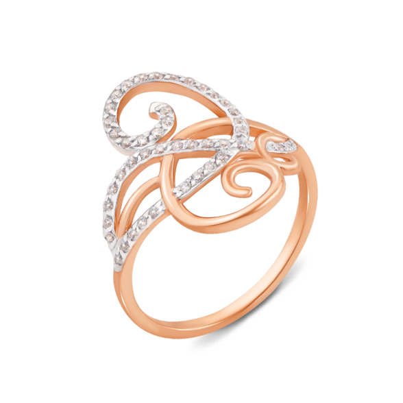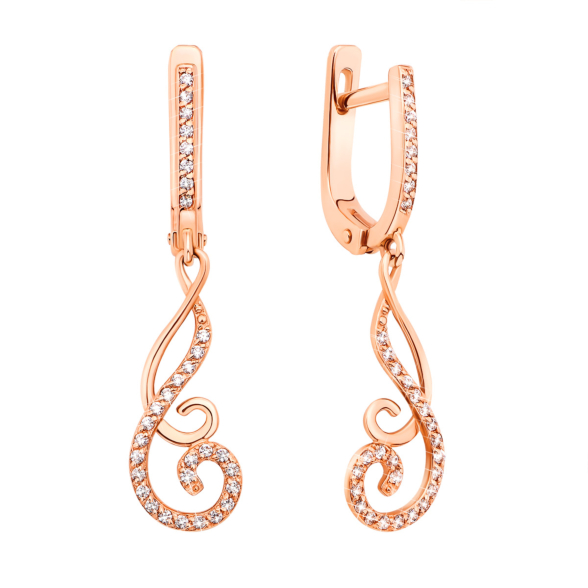Сережки-підвіски з червоного золота 585 проби з фіанітами