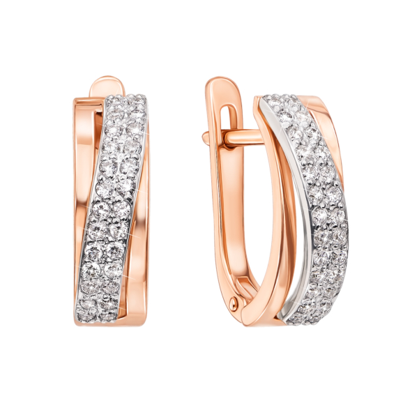 Сережки з червоного золота 585 проби класичної прямокутної форми привернуть увагу оточуючих своїм сяйвом. Розкішні сережки мають бездоганні форми. Витончена вигнута вставка з діамантовим паве створює неповторний ефект. Ця модель сережок оснащена надійним англійським замком.