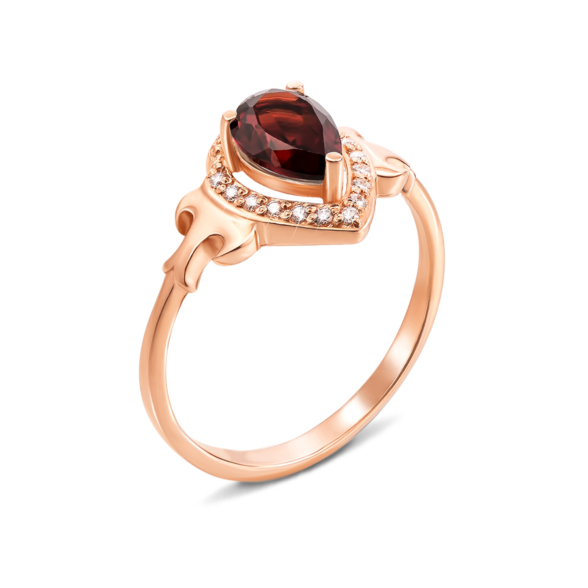 Сережки з червоного золота 585 проби з гранатом в центральній частині прикраси стануть оригінальним акцентом в кожному образі. Напівдорогоцінне каміння, обрамлене золотими стрічками, декорованими фіанітами і увінчане мініатюрної золотою короною, грає кожною гранню в променях сонця, надаючи композиції вишуканий блиск.