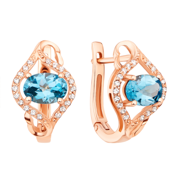 Сережки з червоного золота 585 проби з топазом і фіанітами