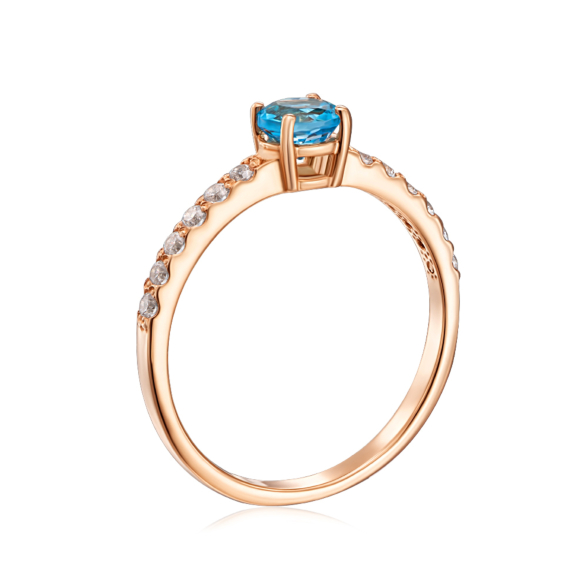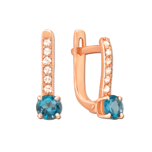 Сережки з червоного золота 585 проби з топазом і фіанітами