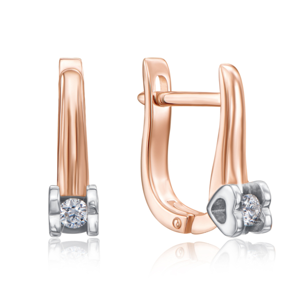 Сережки з червоного і білого золота 585 проби з діамантами.